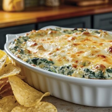 Applebee's spinach artichoke dip is made with cream cheese, sour cream, mayonnaise, frozen spinach, canned artichoke hearts, parmesan, mozzarella, garlic, and seasonings — baked until bubbly and golden. It takes 35 minutes total and serves a crowd. Pair it with tortilla chips, toasted pita, or warm bread.