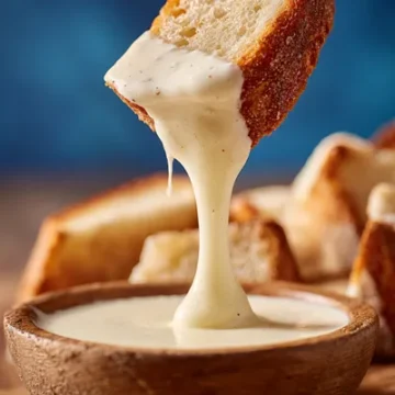 bread dipped into classic Alfredo sauce