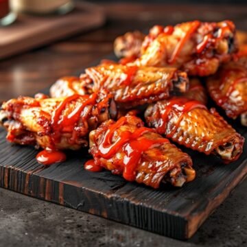The sauce should be thick enough to coat the back of a spoon and leave a clean line when you drag your finger through it. When tossed on wings, it should cling immediately — not pool at the bottom of the bowl.